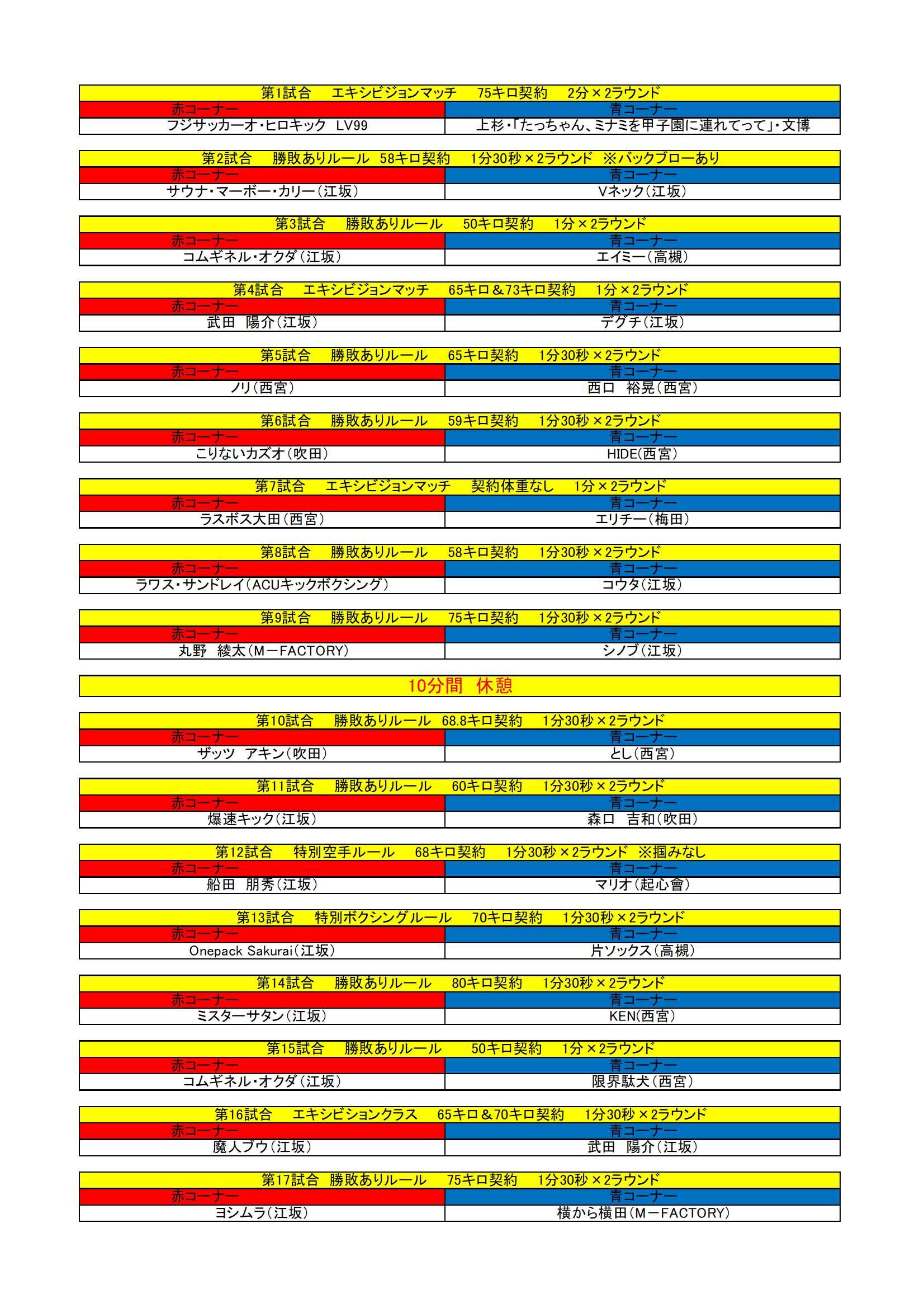 12:45  選手・セコンド入場可能、計量開始(15分程度遅れる可能性あり)