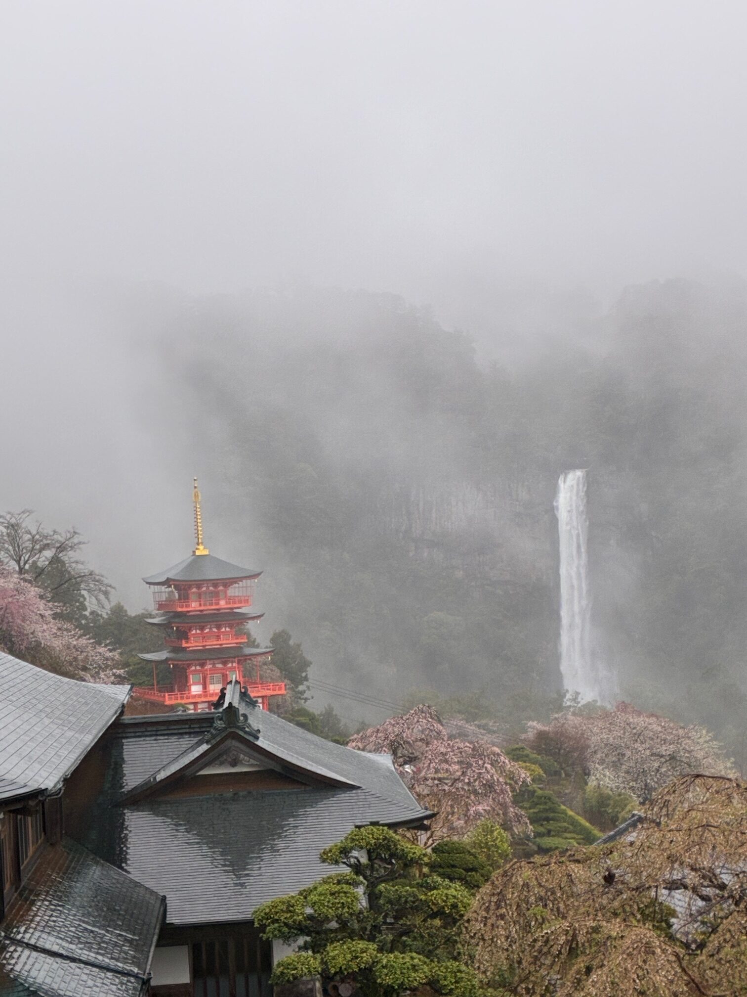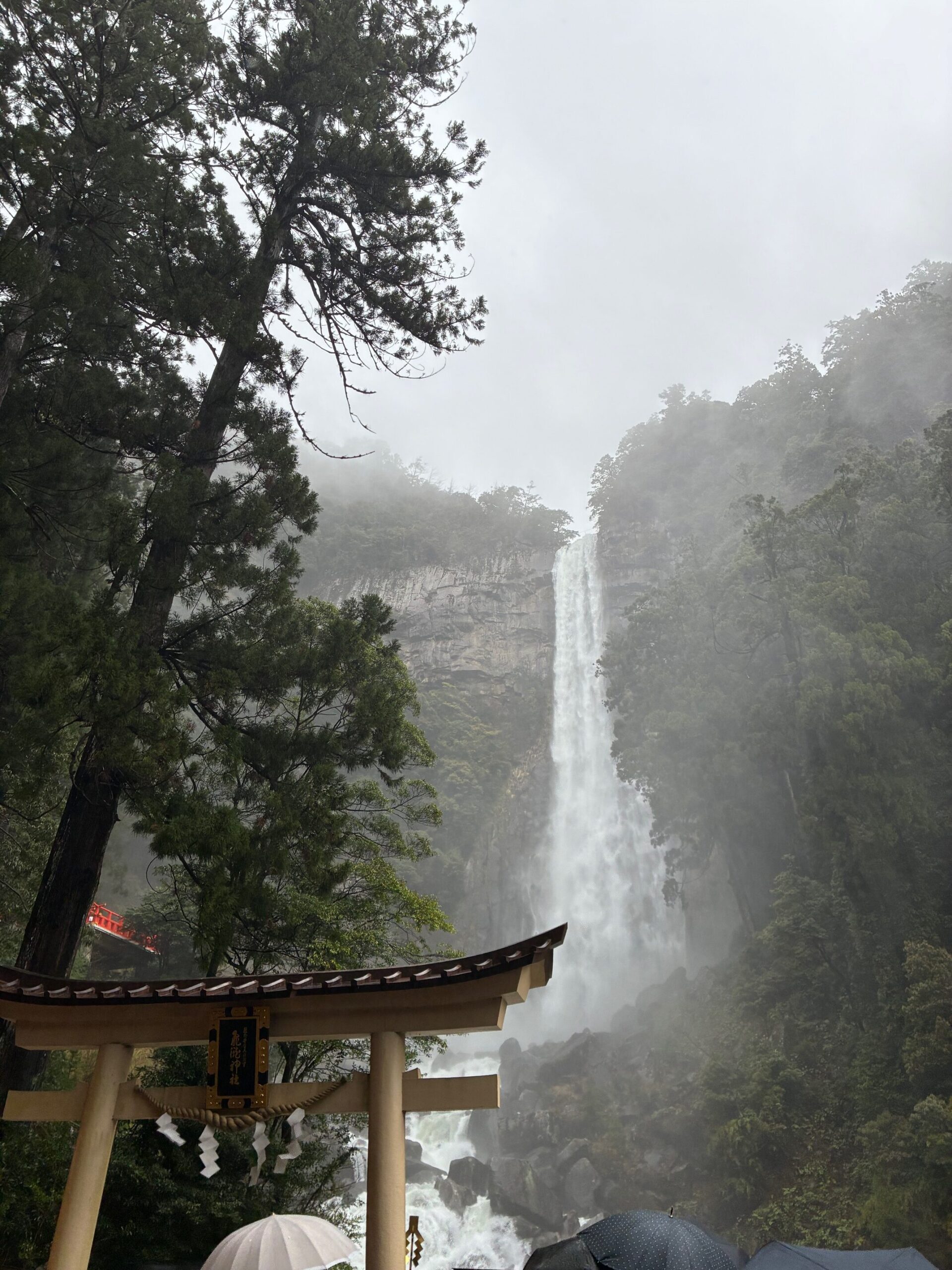 晴れてる時の方が綺麗といえば綺麗なのですが、雨は雨で、霧がかかっていて、滝の水量も音もすごくて、いいなと。
